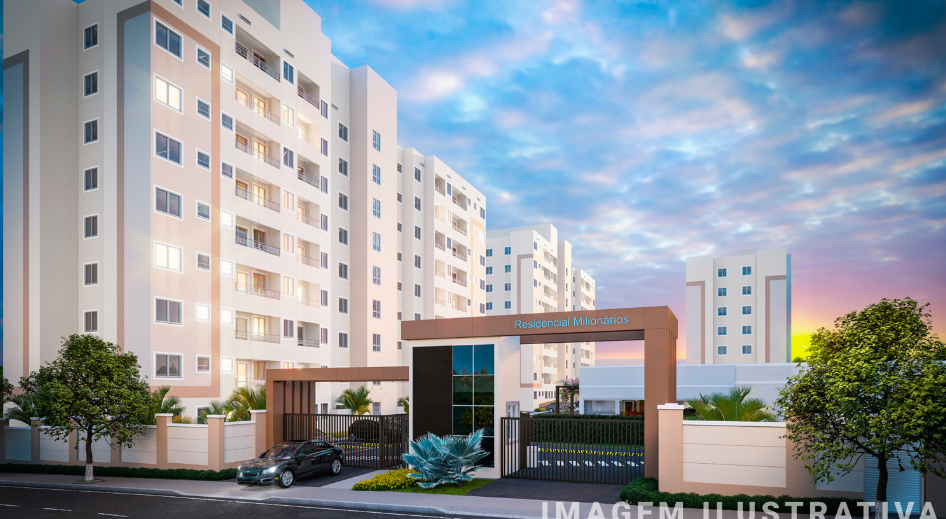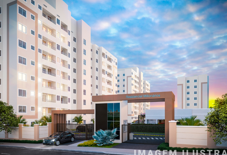 Apartamentos com 2 quartos em condomínio fechado na Região do Milionários, com elevador, laminado nos quartos, garagem vinculada e opções com varanda e suíte.