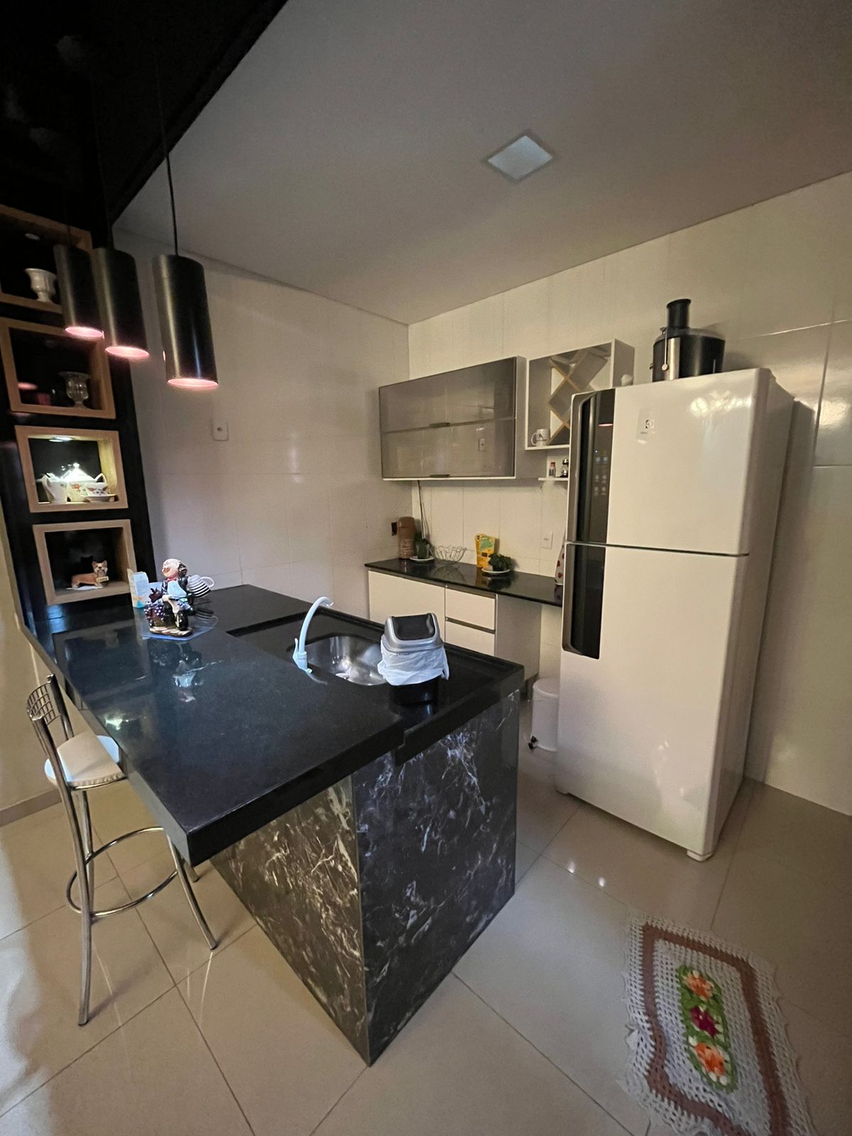 Espaço gourmet (cozinha, churrasqueira e banheiro).